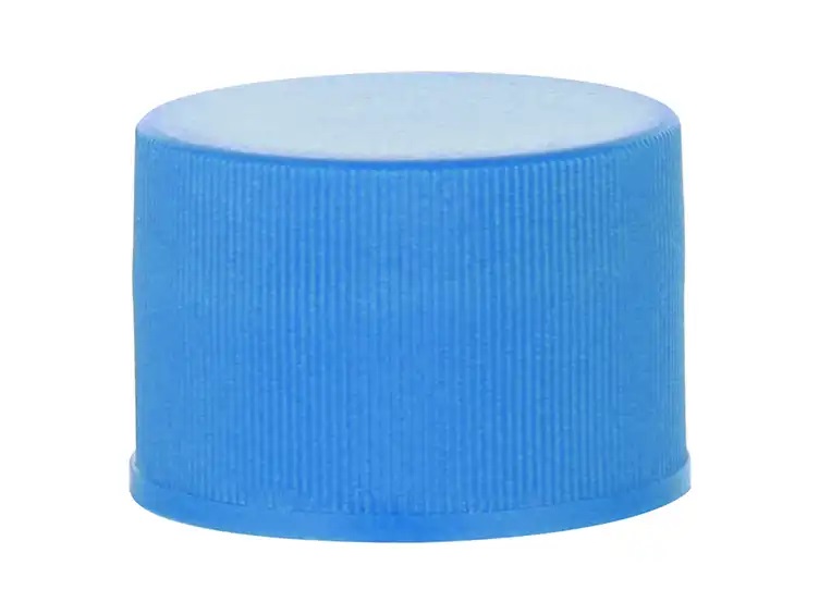 20-410 blue ribbed PP plastic continuous thread non dispensing bottle cap with smooth top & foam liner. Packed 2500 to case.