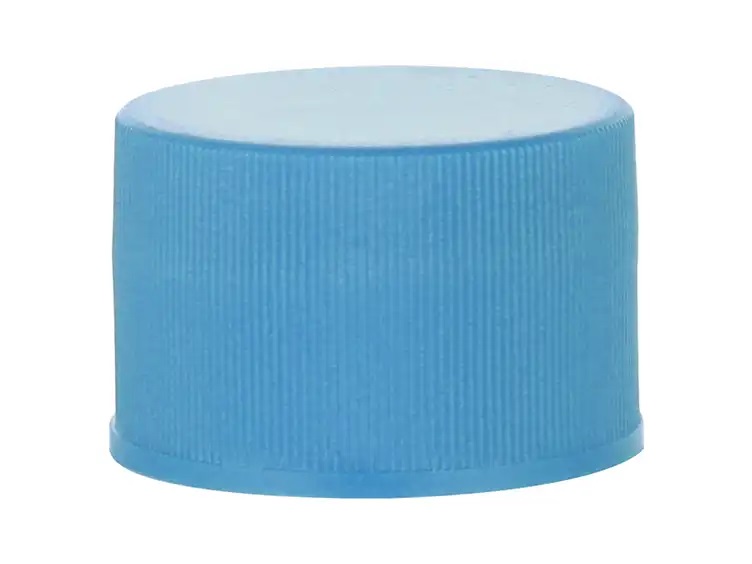 20-410 blue turquoise ribbed PP plastic continuous thread non dispensing bottle cap with stipple top & foam liner. Packed 6000 to case.