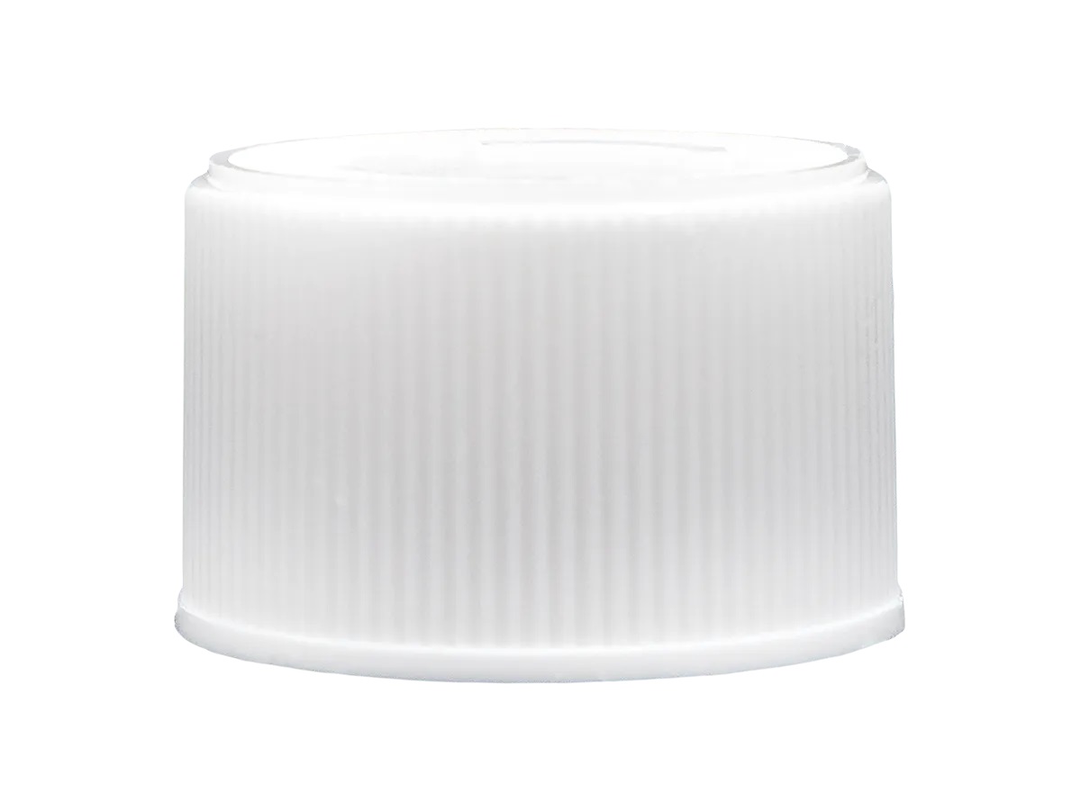 20-410 White CRC Ribbbed CT Bottle Cap-Pulp-HS Liner-Open Instruct