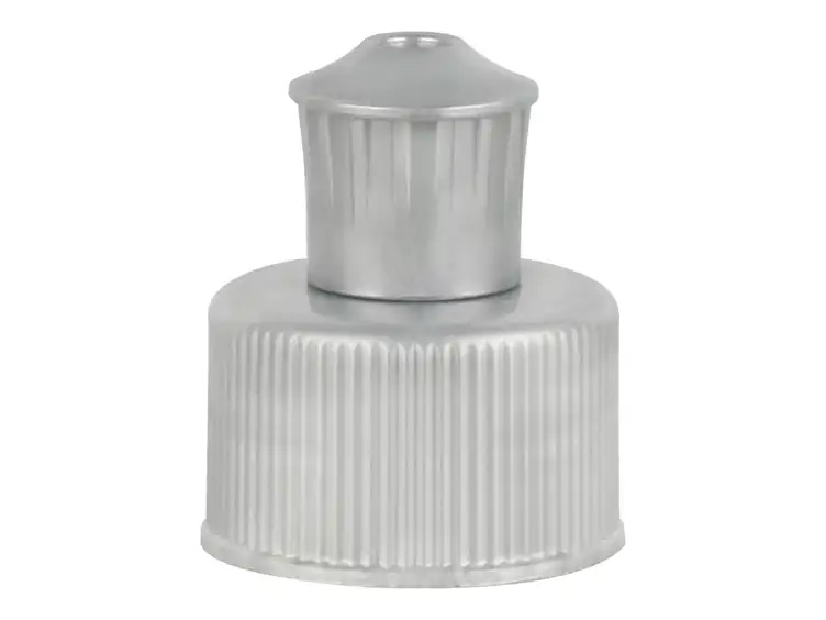 24-410 Gray Ribbed Dispensing PP Plastic Push-Pull Bottle Cap-.200 in. Orif