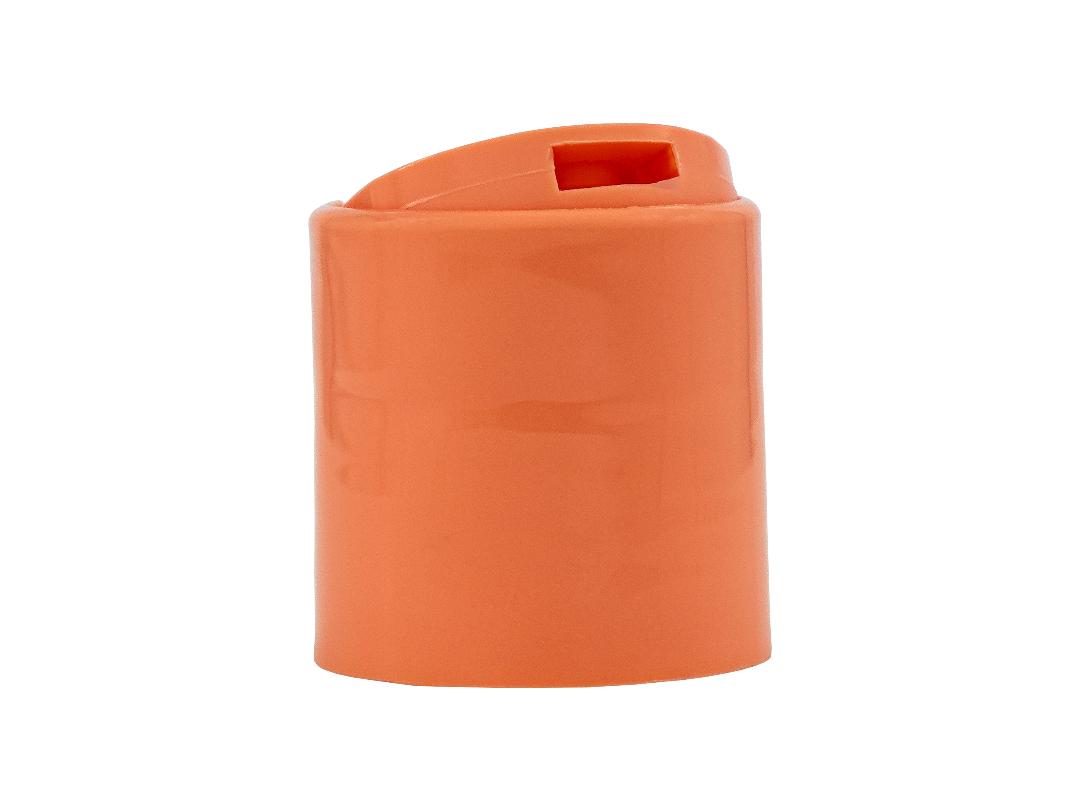 24-410 peach smooth PP plastic D style disc top dispensing bottle cap with .313 in. orifice. Packed 3000 to a case.