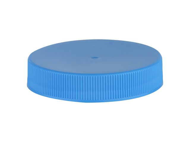 53-400 blue flat ribbed PP plastic non dispensing jar cap with smooth top & liner-less. Jar closure is 2 1/8 in. wide x 1/2 in. high. Packed 1250 to case.