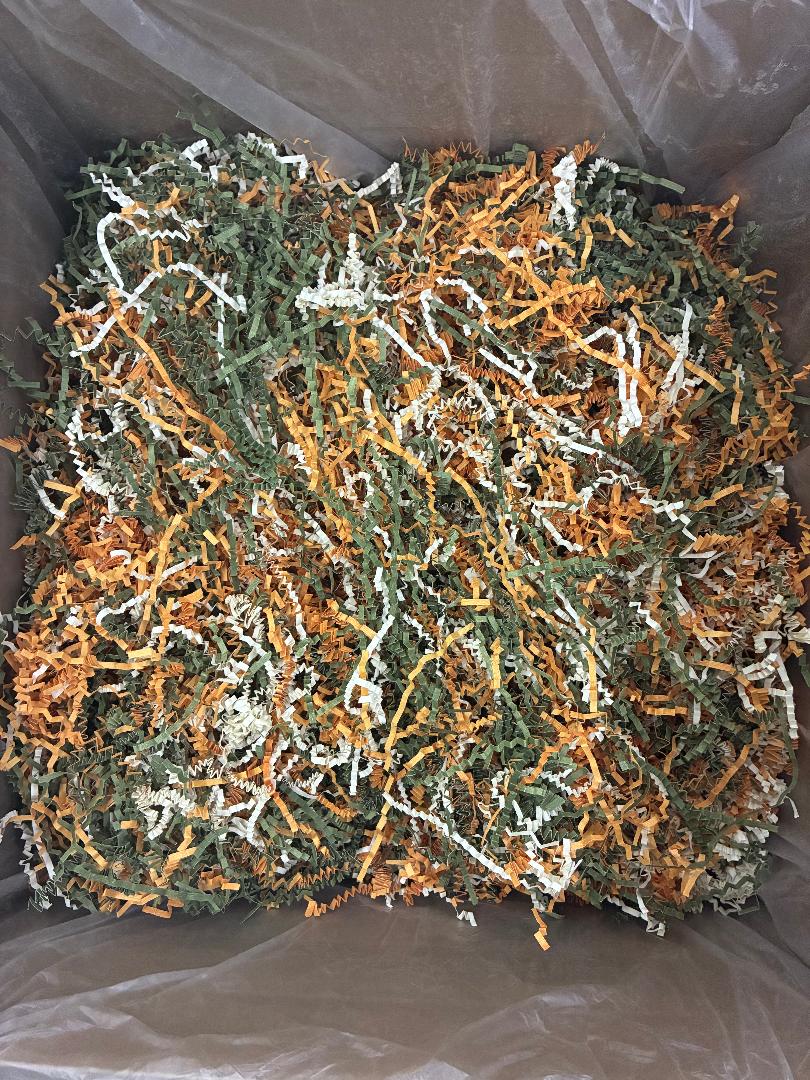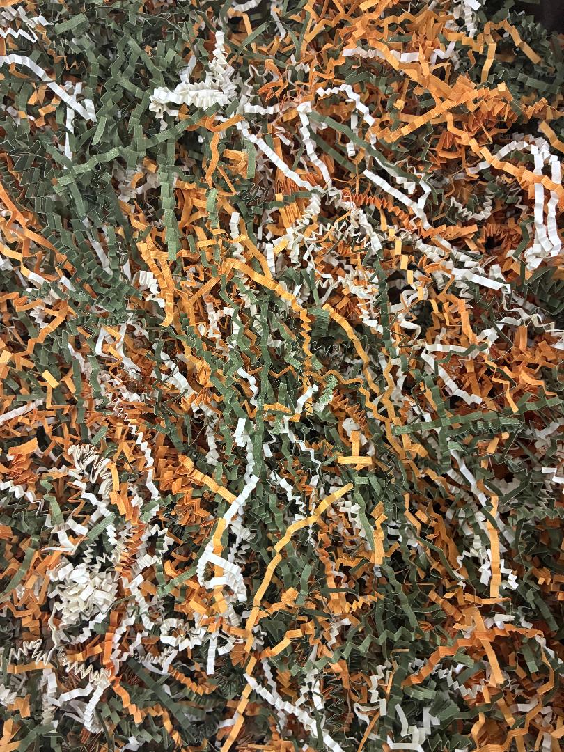 1 lb. Bag Fall Mix Crinkle Paper in cognac, olive & ivory. 16 oz. crinkle shredded paper for filling baskets & gift bags.