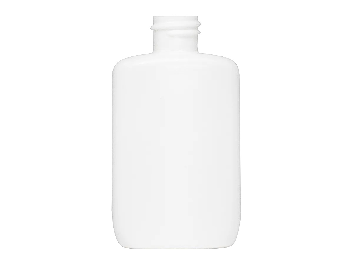 2 oz white HDPE 20-410 drug oval opaque squeezable small plastic bottle with plug and cap. Packed 1000 to a case.