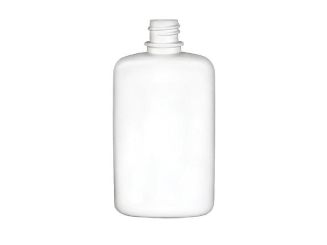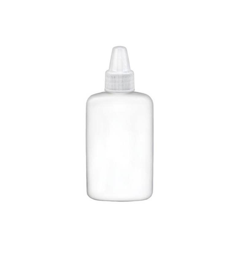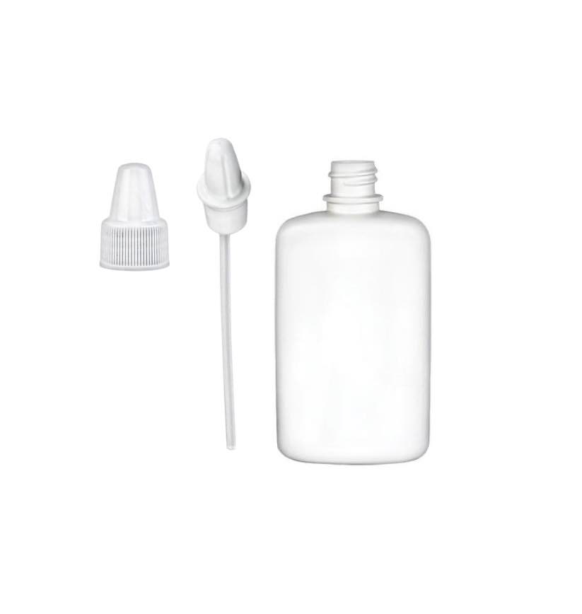 2 oz white LDPE drug oval opaque small plastic bottle with white plug dropper-spray tip & cap.