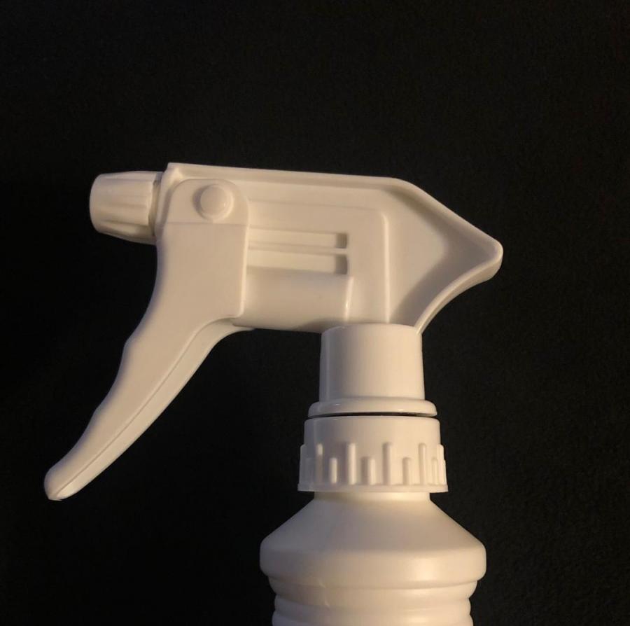 28-400 white ribbed plastic trigger sprayer adjustable nozzle, foam gasket, .9 ml output & 10 in. dip tube.