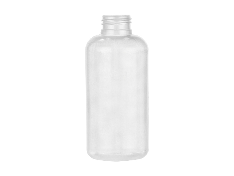 4 oz Natural boston round HDPE 24-410 semi-opaque plastic bottle. Packed 440 to a case.