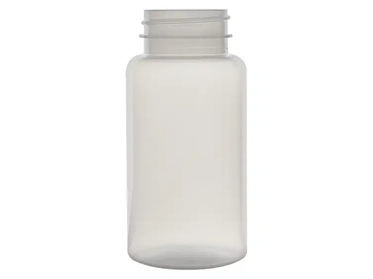 5 oz frosted pearl (150 cc) 38-400 HDPE round plastic packer bottle. Packed 410 to case.