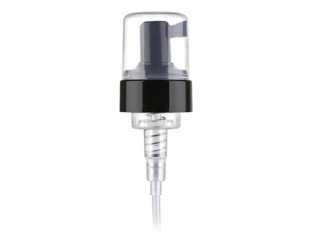 43 mm Black SQ-1 foamer pump with smooth finish, 7 3/8in. dip tube, .7 ml, clear PP hood.
