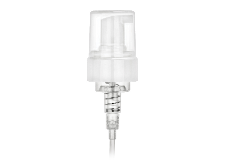 43 mm White SQ-1 foamer pump with smooth finish, 7 3/8in. dip tube, .7 ml, clear PP hood.