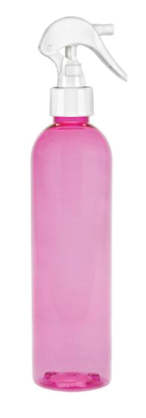 8 oz. pink PET semi-translucent bullet round 24-410 plastic bottle. Plastic bottle is 6 3/4 in. high including neck x 1 7/8 in. wide.