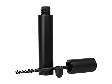 .845 oz (5/6 oz) 25 ML Black matte 13-425 cylinder other plastic opaque mascara bottle with black stem with brush, wiper and over cap.